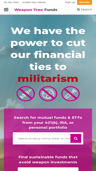Get your money out of weapon stocks. Weapon Free Funds is a search platform that informs and empowers everyday investors.