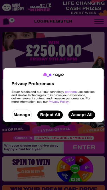 Win big with Win Happy! Enter now to win huge cash prizes, top tech rewards, holiday escapes and much more! Join now – your dream prizes await!