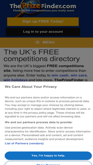 Every genuine UK prize competition available on one free website. Hundreds added weekly. Check out ThePrizeFinder.com