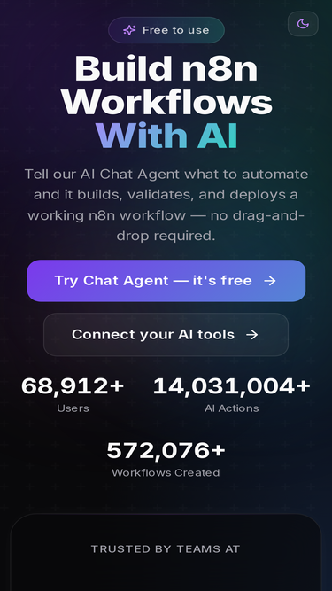 The fastest way to connect AI assistants to n8n workflows. Zero setup, instant results. Start free today.