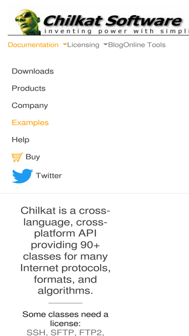 100%chilkat software: cross-platform/cross-language api's for ssh/sftp, ftp, email, encryption, zip, s/mime, xml, eml, mht, ftp, ssl, tls, and more
