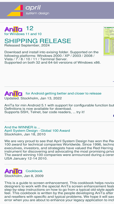 product development and computer consultancy. developing products in c# / vb for asp.net, c++ and java, for networking and security. you find information on our web-server about our lan, wan, internet and security products such as anita terminal emulator for windows and java, fusion95 cifs tcp/ip file-server for unix and dynapass wireless secure access - 'one-time' password via sms direct to cellular phone.