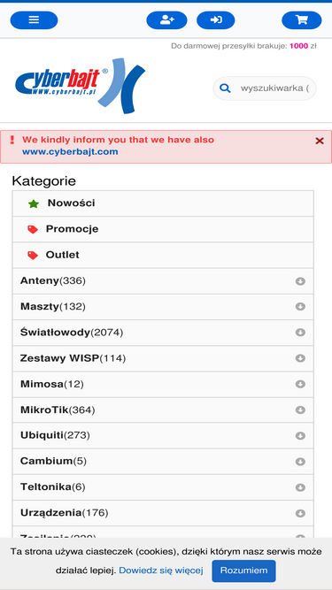 cyberbajt - największy sklep internetowy dla instalatorów i operatorów telekomunikacyjnych isp. prosty system zamówień, szybka dostawa, bezpłatne wsparcie techniczne i fachowe doradztwo. bogata oferta: światłowody, monitoring, mikrotik, ubiquiti, maszty, switche, routery, radiolinie, urządzenia radiowe, anteny, złącza.