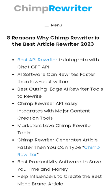 User ManualThe Chimp Rewriter user manual contains comprehensive instructions on all features on how to rewrite. The manual progressively guides the user