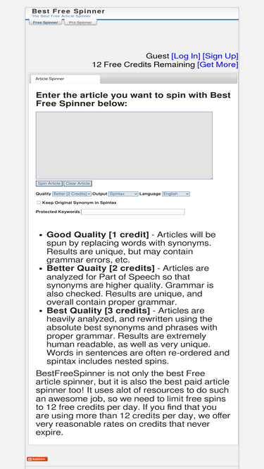best free spinner offers free web based article spinning. comparable to paid spinners like the best spinner, magic article rewriter and spinner chief