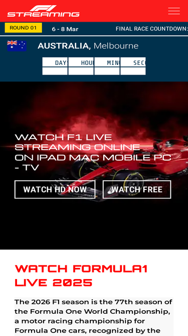 Watch F1 live stream free on any smart device from anywhere in the world. Here you can watch free F1 live streams without signup, vpn, cable.
