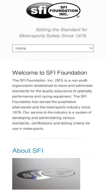 welcome to sfi foundation the sfi foundation, inc. (sfi) is a non-profit organization established to issue and administer standards for the quality assurance of specialty performance and racing equipment. the sfi foundation has served the automotive aftermarket and the motorsports industry since 1978. our service to the industry is a system of developing and administering various standards, certifications and testing criteria for use in motorsports.