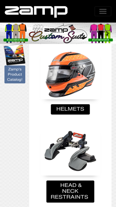 zamp racing offers auto racing helmets, motorcycle helmets, racing suits, racing shoes, racing gloves, head and neck restraints, and racing accessories.
