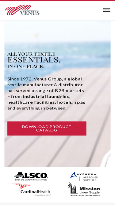 venus group - global textiles supplier & manufacturer - is a privately held business headquartered in california usa. we develop textile products for a variety of industries: hospitality, institutional laundries, healthcare, government & home fashion. browse our products & download our catalogs! call us at 800.421.6599