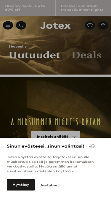 osta kodinsisustusta netistä. suuri valikoima verhoja, vuodevaatteita, mattoja, huonekaluja, sisustusesineitä ja valaisimia. sisustusta hyvään hintaan osoitteessa jotex.fi.