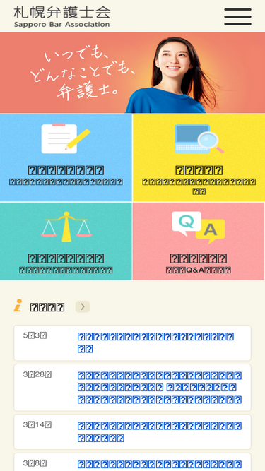 札幌弁護士会(札弁)のホームペ-ジにようこそ。法律問題でお困りの方へ「 法律相談センター 」のご案内、弁護士を探している方へ「 弁護士検索 」、札幌弁護士会の活動案内や弁護士コラム、市民のみなさまのお役に立つ情報満載です。