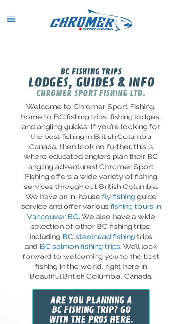 Welcome to Chromer Sport Fishing, home to the best BC fishing trips. British Columbia salmon & steelhead lodges, fly fishing trips and more!