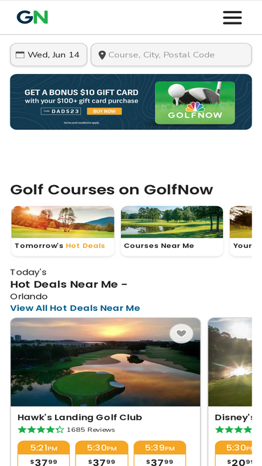 96%Give the gift of golf with GolfNow gift cards. With tee times at 9,000+ golf courses, GolfNow is the essential golf gift card for everyone.