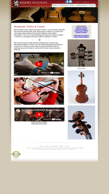 Handmade bluegrass fiddles, 5 string violins and classical guitars.