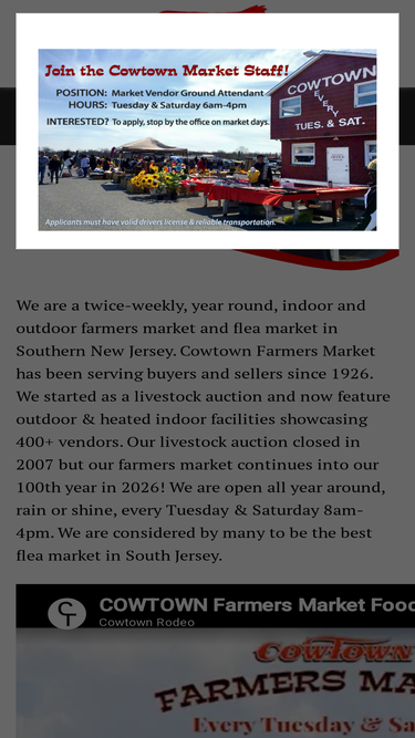 Cowtown Farmers Market is a large indoor and outdoor flea market located in Pilesgrove, NJ. The market is open every Tuesday and Saturday year round.