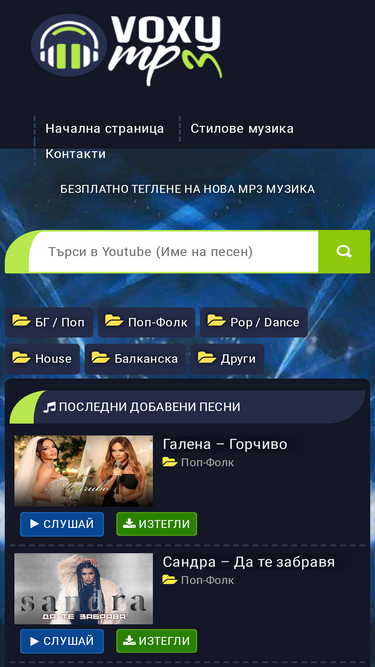 Безплатно теглене на нова MP3 музика. Най-новата музика, най-високото качество, бързо и лесно сваляне без регистрации. Подходящ за мобилни и десктоп устройства.