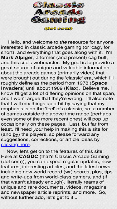 classic arcade gaming (dot com) chronicles the history of the 'golden age' of coin-op video gaming (including the games, players, contests, scores, and more...).