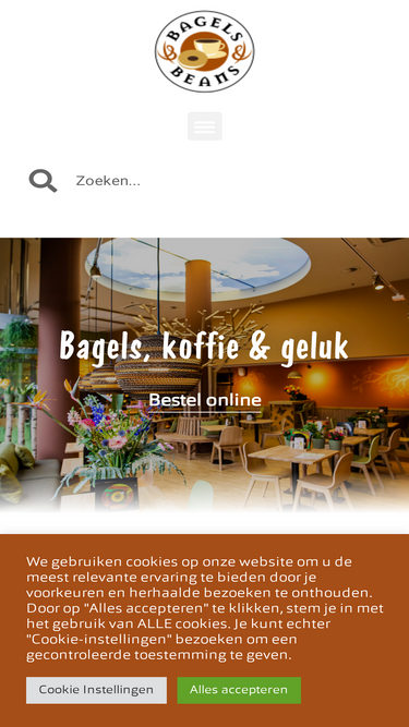 Bestel jouw dagelijkse dosis Bagels, koffie & geluk. We brengen het bij je thuis of zetten het bij jouw Bagels&Beans voor je klaar.