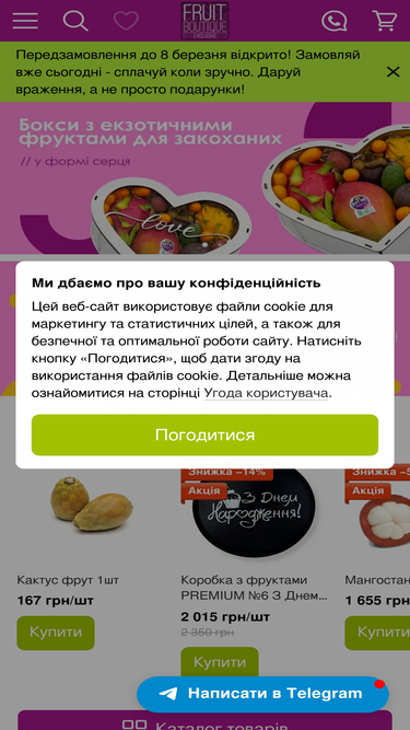 у нашому магазині екзотичніх фруктів ✅yesfrukt.com ✅ представлений великий вибір завжди свіжих фруктів і ягід (поштучно, набори) ☝ замовити в києві і україні ☝ відгуки ✓ акції ✓ доставка прямо до вас додому