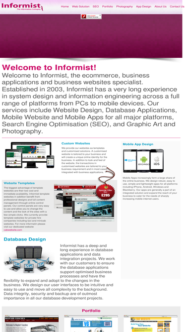 coventry based informist company offers professional custom web design, simple and affordable website templates, database development and search engine optimization