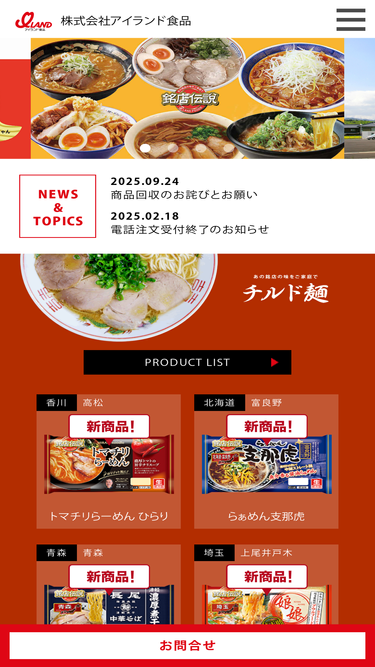 株式会社アイランド食品は、生ラーメンの製造に特化した会社です。特に有名なラーメン店の味を再現する「銘店伝説」に力を入れており、その再現力には自信があります。店主のこだわりを、想いを。時間をかけて忠実に再現し、店主にご納得頂いたものしかお届けしないというポリシーをもって事業に取り組んでいます。
