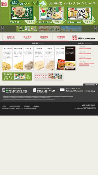 昭和23年から旭川において創業以来、六十有余年の間、麺類一筋で製造・販売を行う藤原製麺のコーポレイトサイト。 人気の熊出没注意ラーメンや動物園ラーメンなどの商品情報ほか、会社情報、採用情報など。