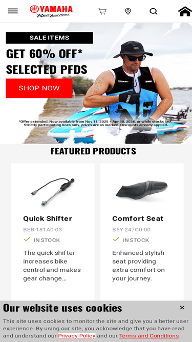 Online home for Genuine Yamaha accessories, Yamaha Racing apparel, merchandise, limited edition Yamaha accesories and Yamalube oils - a liquid engine component. Find everything you need for your Yamaha vehicle - Motorcycles, ATVs, WaveRunners, Outboards and more.