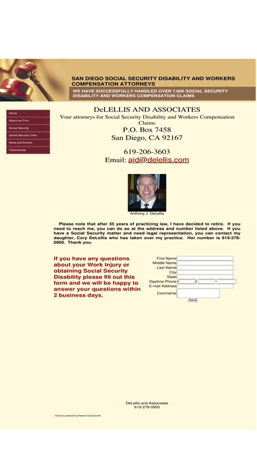 delellis and associates is a very successful san diego law firm that limits its practice to handling social security disability and workers compensation cases. we have won over 7,000 socials security disability and workers compensation claims since 1990. delellis and associates has an excellent reputation with an excellent track record. if you want the best representation for your social security disability or workers compensation we offer free consultations and there is no fee until you win your claim.