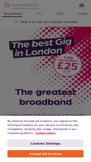 Discover our best cheap broadband deals on London's largest full fibre only network, with speeds up to 5 Gbps. Switch hassle-free to Community Fibre today.