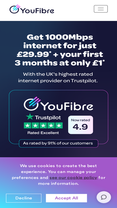 Hyper Fast & Hyper Reliable Full Fibre Broadband. Accelerate with equally fast upload and download speeds on our 150 Mb to 1Gb packages. Check out our deals today!