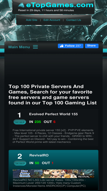 100%biggest top list for private servers. join our high traffic top list and we can guarantee you more traffic for free.