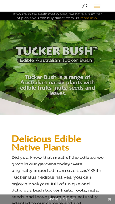 Tucker Bush is range of Australian native plants with edible fruits, nuts, seeds and leaves.