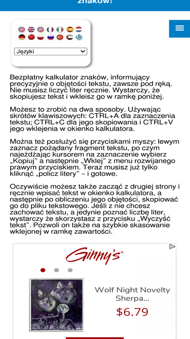 darmowy kalkulator online zlicza liczbę znaków lub liter w tekście
