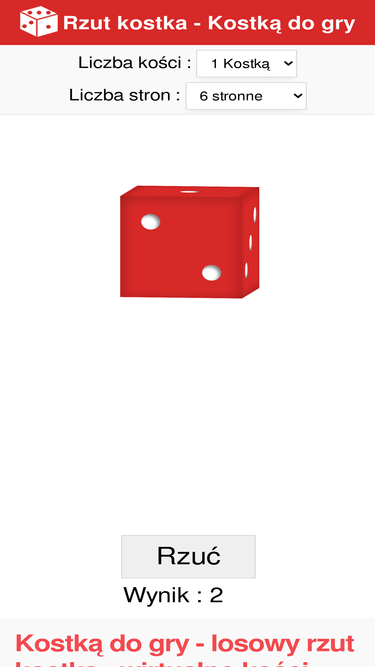 rzut kostką online, to narzędzie umożliwia wirtualny rzut kostką. idealny do gier planszowych, pozwala na stworzenie kości z losową stronne