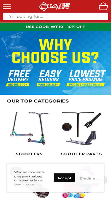 Skates.co.uk - UK's biggest shop of all things Scooter, Skates and Skateboard Related. Next Day Delivery, Unbeatable Prices & Top Quality Service, all from a UK family run and based business.