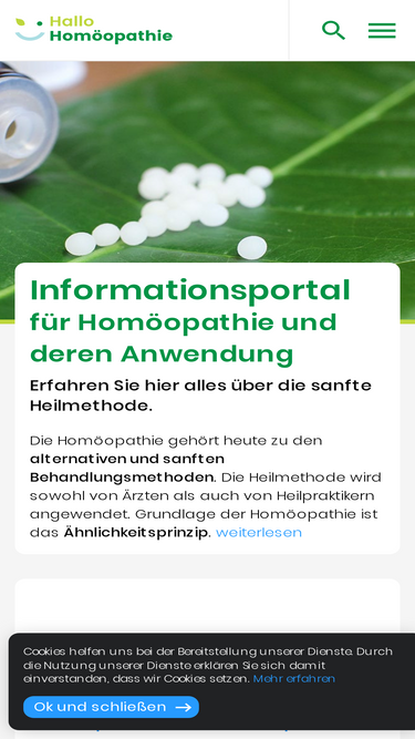 92%Von der Homöopathie sind immer mehr Menschen begeistert und fasziniert. Wer bereits die Wirkung einer homöopathischen Behandlung erlebt hat, ist meist tief beeindruckt von der körperlichen Wirkung und noch mehr von den Auswirkungen der homöopathischen Arzneimittel auf die Seele. Ziel einer homöopathischen Behandlung ist nicht nur die schlichte Beseitigung von körperlichen Symptomen, sondern eine langfristige Gesunderhaltung. Die Website Hallo Homöopathie informiert umfassend über die Anwendung, die unterschiedlichen homöopathischen Arzneimittel und deren Anwendungsgebiete.