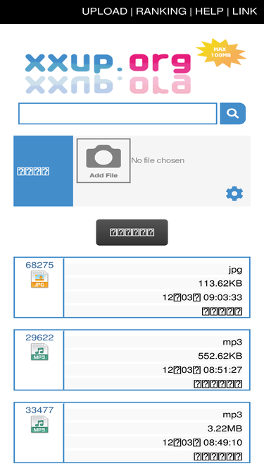 xxup.org無料アップローダー。gif,jpg,zipなど様々な拡張子に対応。画像や動画もアップロードできます。時間指定の自動削除も対応しています。