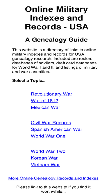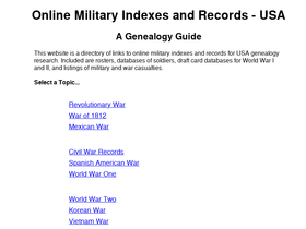 a directory of online military records and indexes, listed by war: civil war, wwi, wwii & more.