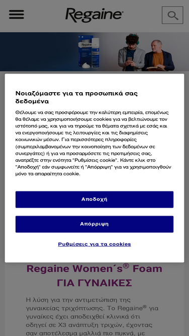 96%Ταλαιπωρείστε από κληρονομική τριχόπτωση; Δοκιμάστε το Regaine® - είναι κλινικά αποδεδειγμένο ότι σταματάει την τριχόπτωση.