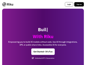 72%The Riku team introduces their exciting new Version 2 release, which makes prompt engineering, fine-tuning, finding, and sharing AI creations easier than ever. Version 2 simplifies no-code fine-tuning, upgrades prompt chaining capabilities, and seamlessly integrates with other platforms. Riku Version 2 features a fresh look and enhanced functionality. Learn about the new branding, tutorials, help docs, and tailored landing pages for different users. Check out the latest upgrades to fine-tuning, prompt engineering, sharing, and more in this innovative all-in-one AI platform.