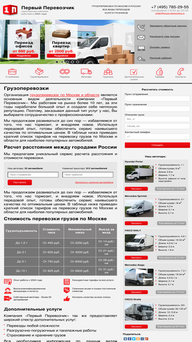100%грузоперевозки - приоритетный вид деятельности компании первый перевозчик. перевозкой грузов мы занимаемся более 10 лет. у нас выгодные цены и широкий спектр дополнительных услуг.