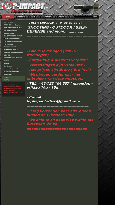 op de webshop vind je een uitgebreid aanbod: co2 pistolen en revolvers, airsoft guns, luchtdruk geweren, pcp geweren en pistolen, etc.