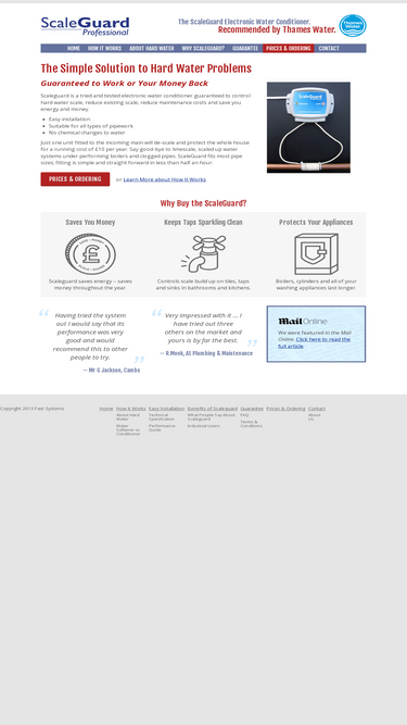 scaleguard. live in a hard water area and suffer from limescale problems? our computerised electronic water conditioner eliminates limescale without changing the mineral content of the water at all. save money on fuel bills.