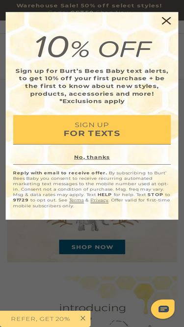 82%PRIVACY AND SECURITY Burt's Bees Baby® is a trademark of The Burt's Bees Product Company used under license by Ayablu, Inc. When you provide us with information through Burtsbeesbaby.com (the "Site"), we respect your privacy. It is important for you to understand what information we collect about you during your visit