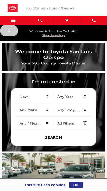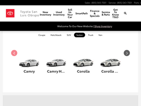 visit toyota san luis obispo for a variety of new and used cars by toyota, serving san luis obispo, california. we serve slo, paso robles, arroyo grande, baywood-los osos and atascadero and are ready to assist you!