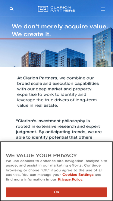 88%clarion partners is one of the largest real estate investment companies in the world, identifying and leveraging the true drivers of long-term value in real estate.