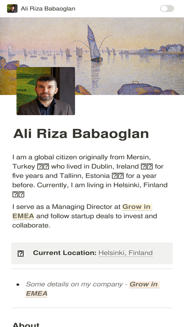 83%proudly originating from mersin, turkey, i've embraced the spirit of a global citizen. my journey led me to reside in dublin, ireland, for five years, followed by a year in tallinn, estonia. currently, i am living in helsinki, finland.