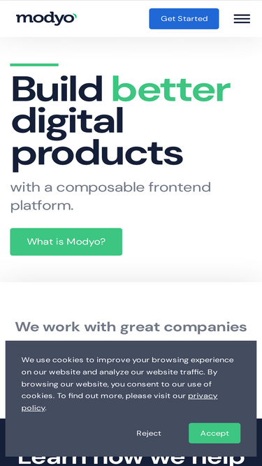 27%Modyo's composable frontend platform builds digital products integrated to your business systems. Manage web apps, mobile, micro frontends and onboarding.