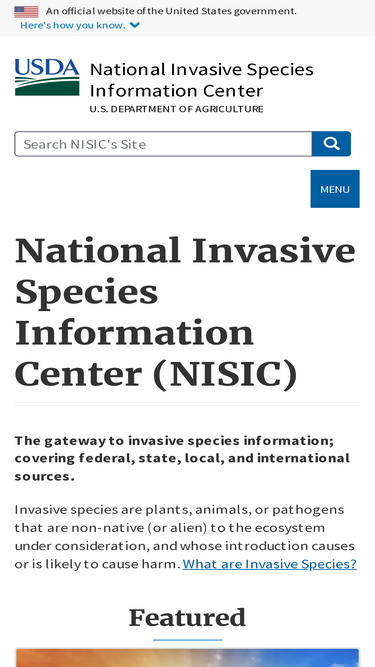 national invasive species information center -- the gateway to invasive species information; covering federal, state, local and international sources.