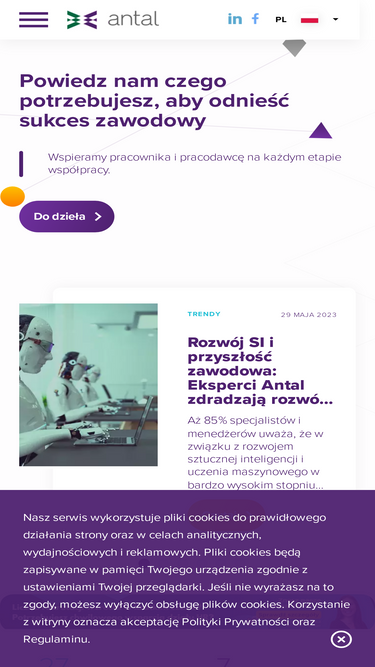 Antal has a flexible approach to the needs of employers. We specialize not only in recruitment, but also in HR consulting. We have narrow specializations within teams. As a result, our consultants are experts in specific market areas - they will advise both when choosing a candidate and when planning the development of individual positions. We also offer professional employee assessment services (180 and 360 degrees), Assessment and Development Center and we are the official distributor of psychometric tests Self Management Group in Poland - tools dedicated to recruitment for sales positions.